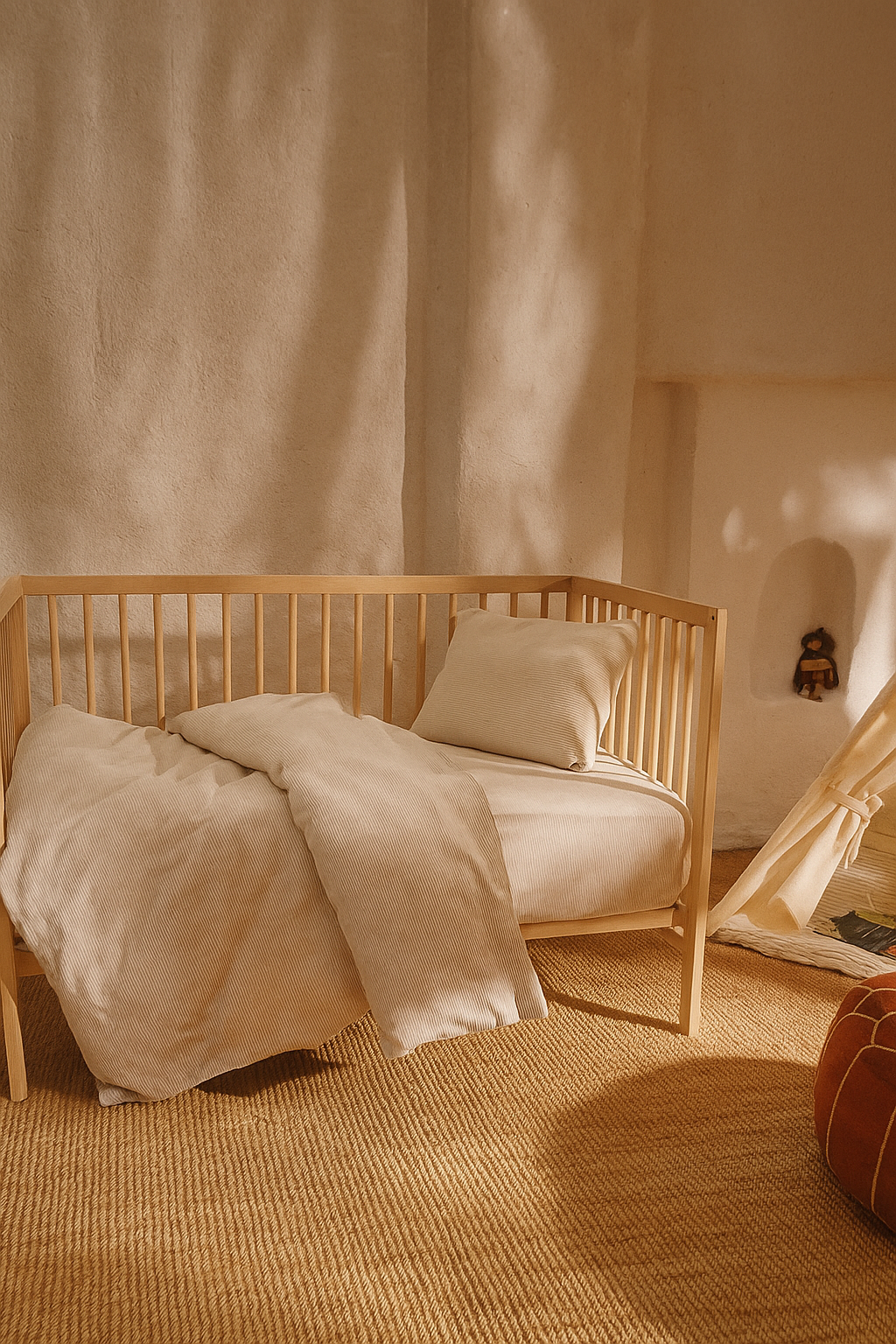 %100 Pamuk-Keten Efektli Yıkanmış Kumaş ; 100x150 mm Nevresim ; 70x140+20 mm Lastikli Çarşaf ; 35x45 mm Yastık Kılıfı ; Bebeklerin hassas cildine uygun , yumuşak kumaş ;