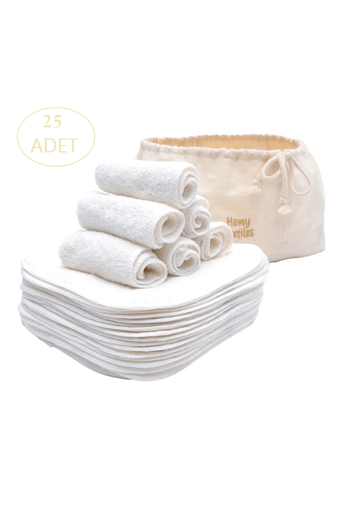 Makyaj Temizleme Mendili Yüz Havlusu Bebek Ağız Bezi Organik Bambu 25'li Set Çanta Hediyeli